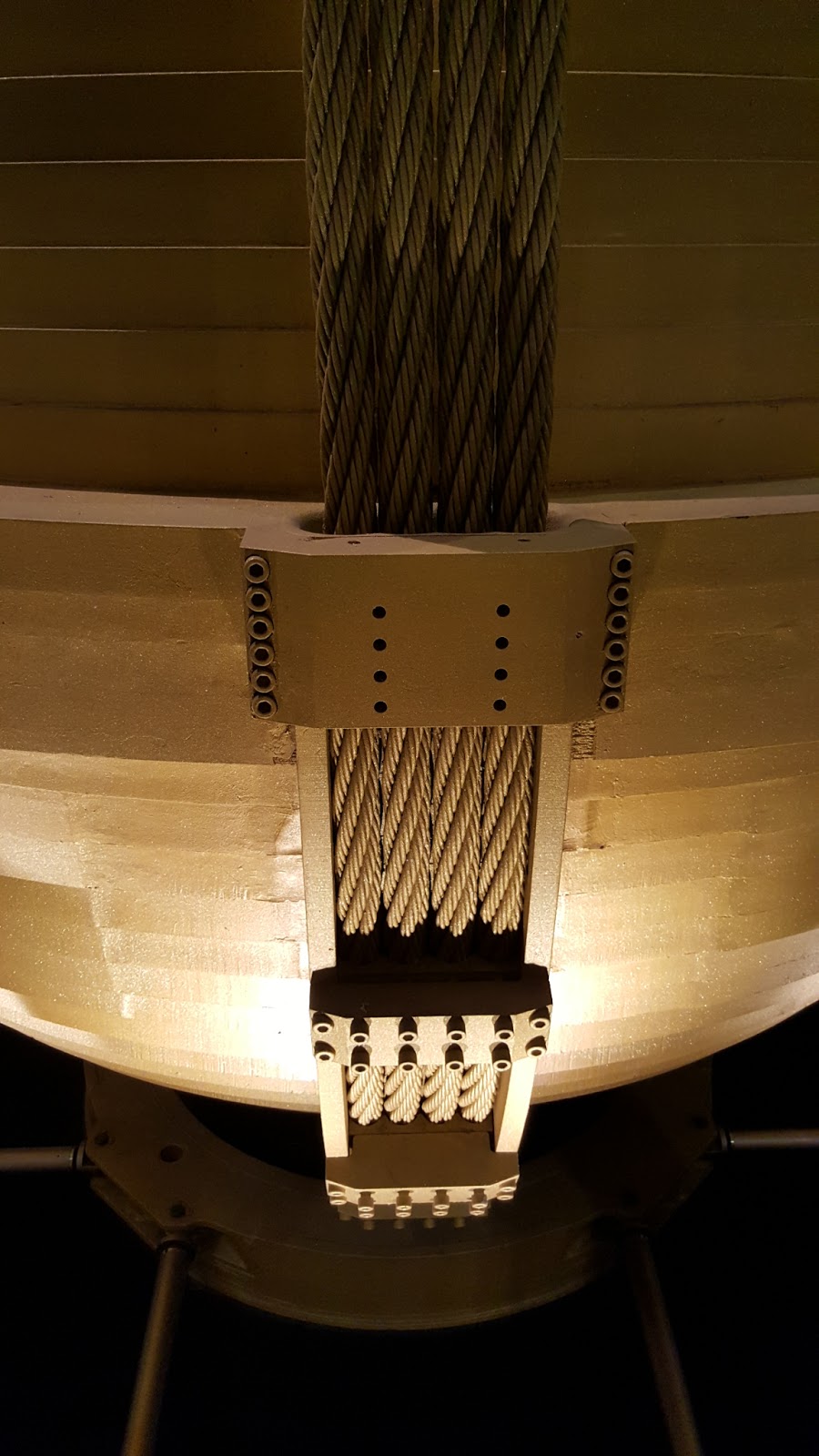 A huge tuned mass damper is located at the 88th floor. The damper is suspended within the building which will offset the force of winds and help 101 stand upright.